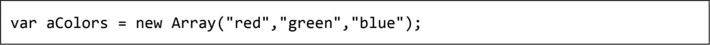 还可以使用字面量表示要创建的数组对象而不需调用数组的构造函数,即将一组元素值用逗号分隔放在方括号内。