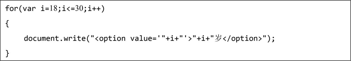 在页面正文中的列表框标签内部运行的脚本为列表框创建了很多选项。