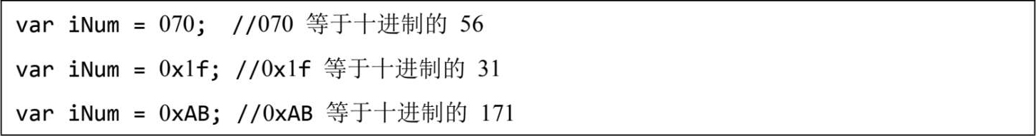 整数可使用 3 种进制表示,除十进制之外,还可以使用八进制或十六进制。如果数字以0 作为前缀,则说明它是八进制数,如果数字以 0x作为前缀,则说明它是十六进制数。如下代码说明这一点:
