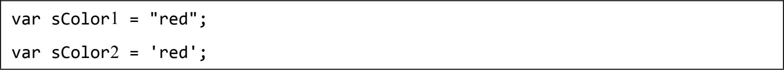 字符串字面量是由双引号(")或单引号(')声明的,由于ECMAScript没有字符类型,所以可使用这两种表示法中的任何一种。例如,下面的两行代码都有效: