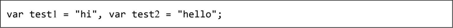 前面的代码定义了变量test1,初始值为"hi",还定义了变量test2,初始值为"hello"。