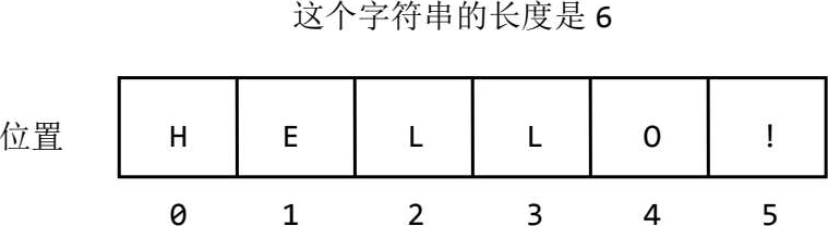 字符串中每个字符都有特定的位置,首字符从位置 0 开始,第二个字符在位置1,依次类推。这意味着字符串中的最后一个字符的位置一定是字符串的长度减1,如图1.7所示。