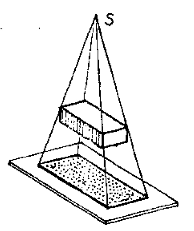 如图2.1所示,投影线都通过投影中心S,叫中心投影法。透视图就是利用中心投影法获得的图形。