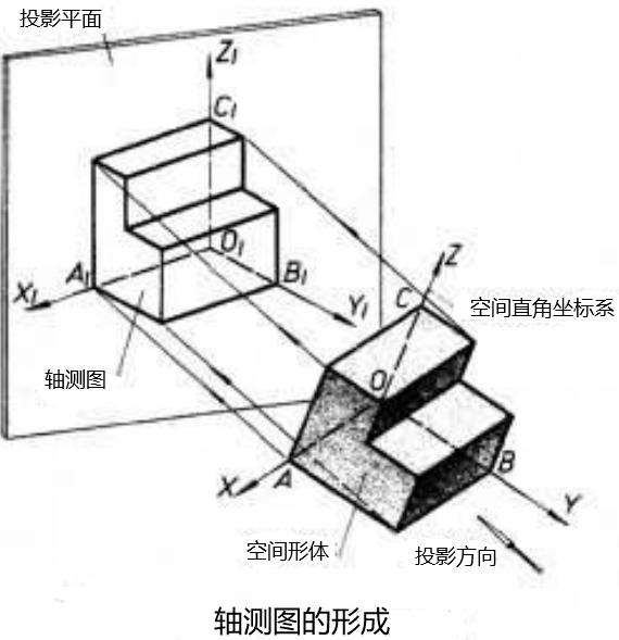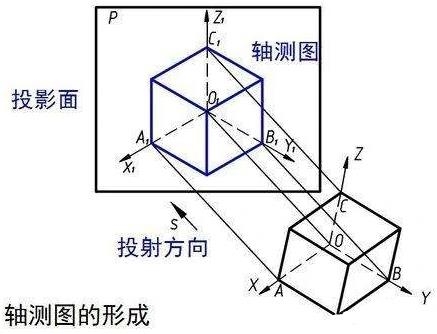 研究透视投影时,常用轴测图作为直观图来表示物体、画面、视点三者的相关位置和投影情况。