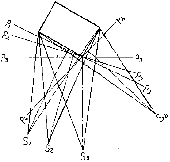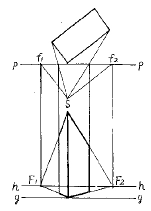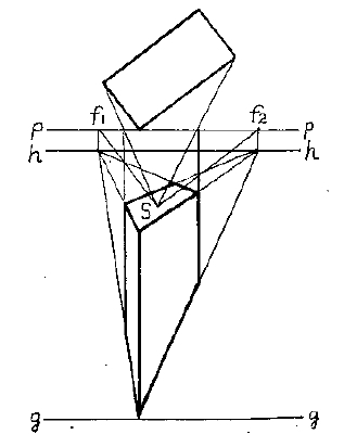 上述这种作透视图的方法叫视线迹点法。亦称丢勒法,或正投影图法。它利用正投影中求视线迹点的方法来画透视图,虽然作图较繁,但经简化后运用较广,特别是画由许多非直角构成的物体时,用这种方法比较适用有效。