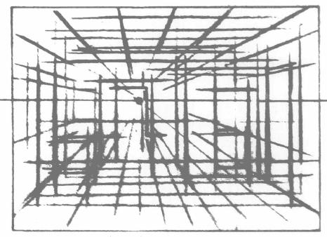 (2)如图3.7B所示:任何平行透视景物,无论是简单的还是复杂的,它们的轮廓线都“隐藏”在网格线条中,找出它们的位置。