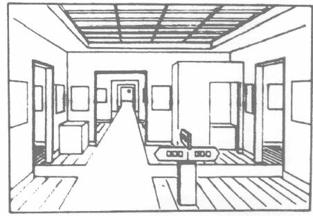作透视图的实质就是如何表现各种线段在纵深关系中的距离和长度的变化。在透视的纵深关系中,不同透视方向的线段有两类:一类是与画面成垂直关系的线段,另一类是与画面成倾斜关系的线段。平行透视图中,测定与画面垂直的线段透视长度可采用距点法。