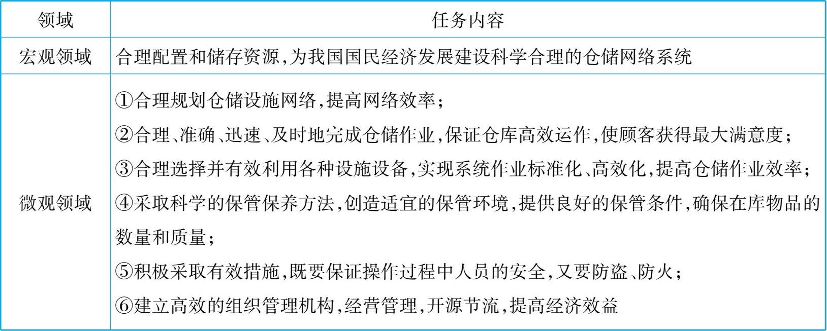2.仓储管理的基本任务(表 1-2)