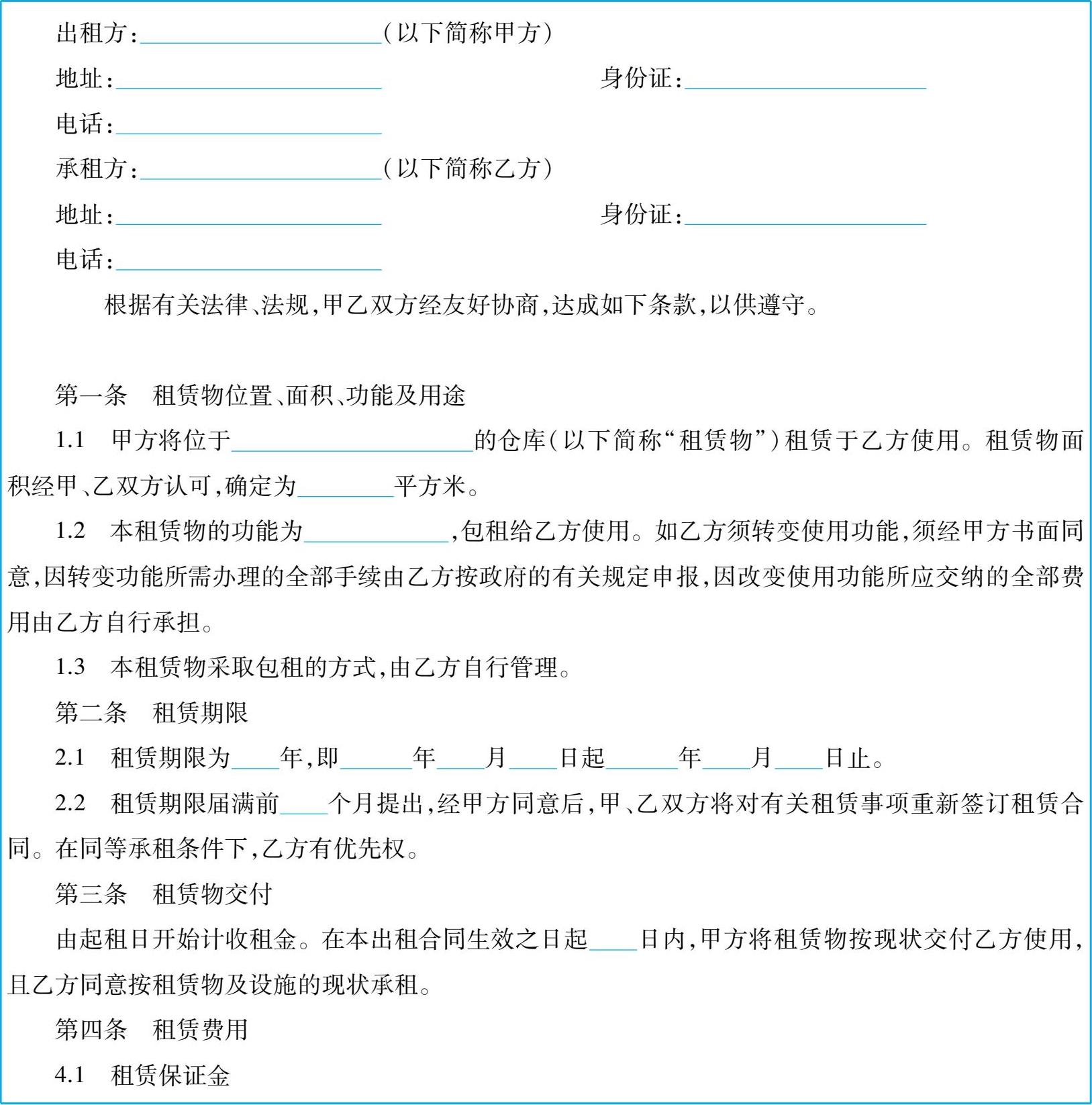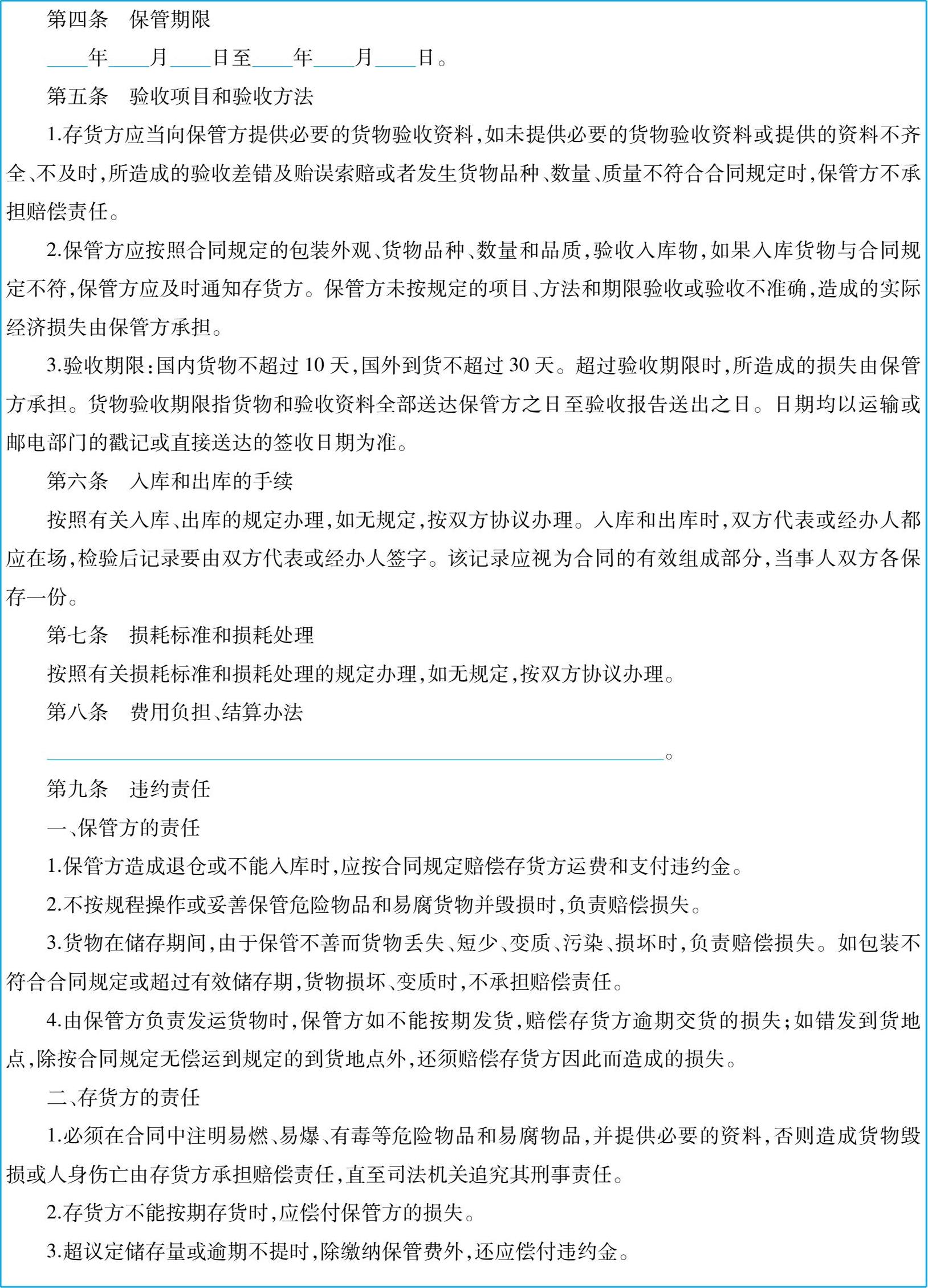 作为宜信仓库物流有限公司的仓库主管,请完成仓储合同。
