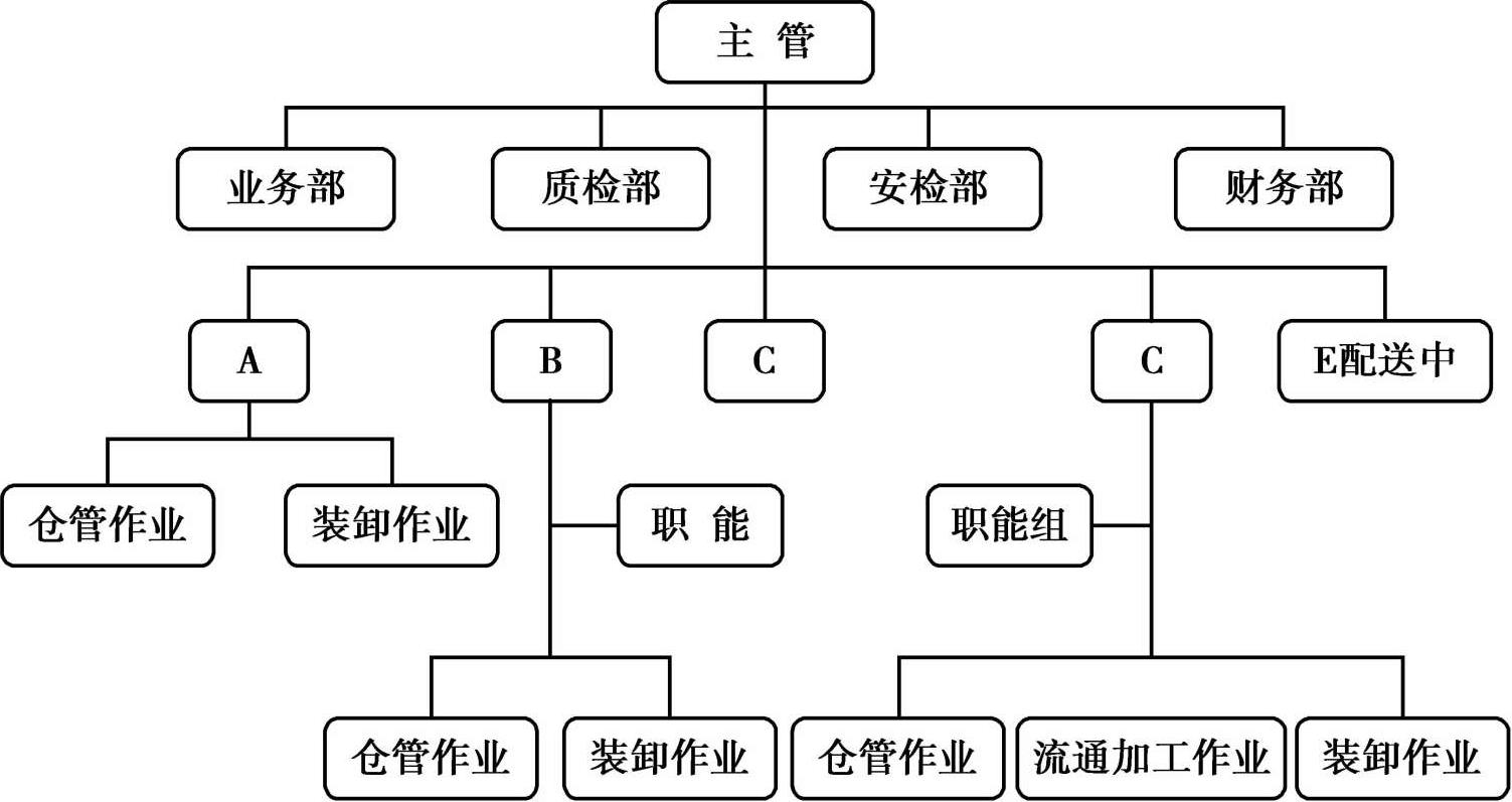 物流组织采用职能分工,实行专业化管理办法来代替直线型全能管理者;各职能机构在自己业务范围内可以向下级下达命令指示,指挥下属。职能型组织结构形式,如图 1-7所示。
