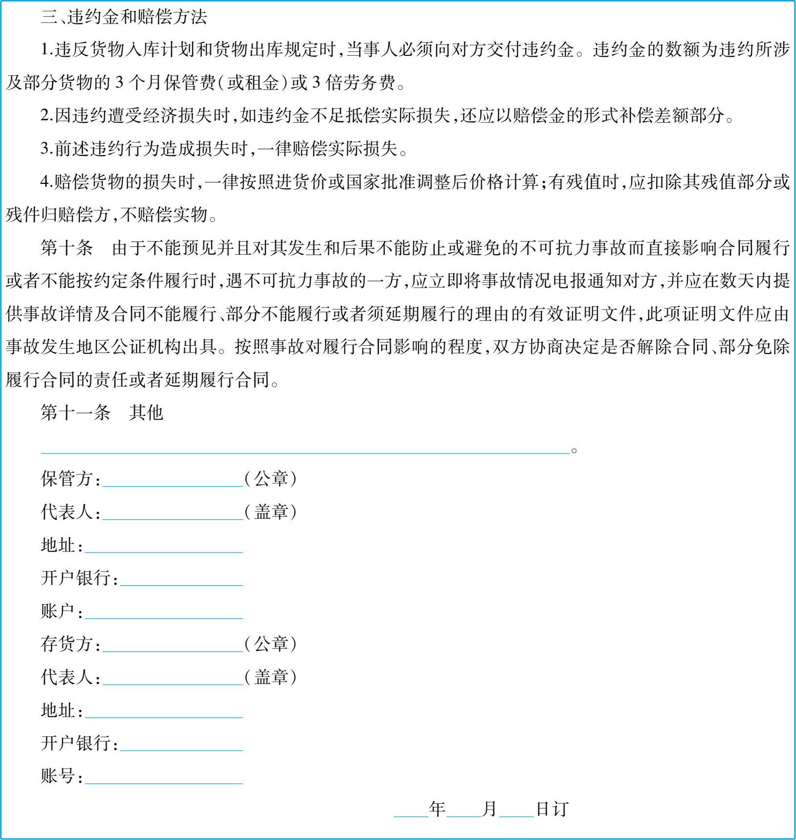 对变更前未履行部分,可向对方请求赔偿或变更合同的条件。例如,仓储费率提高时,提出变更请求,若存货人同意变更,仓储费按变更后支付,变更前费率不变;若存货人并未支付仓储费,保管人可请求赔偿。再例如,仓储物数量规定 1月份交付 10吨、2月份交付 10吨,而实际中存货人 1月份交付 50吨、2月份交付 150吨并提出变更数量,保管人可索赔。