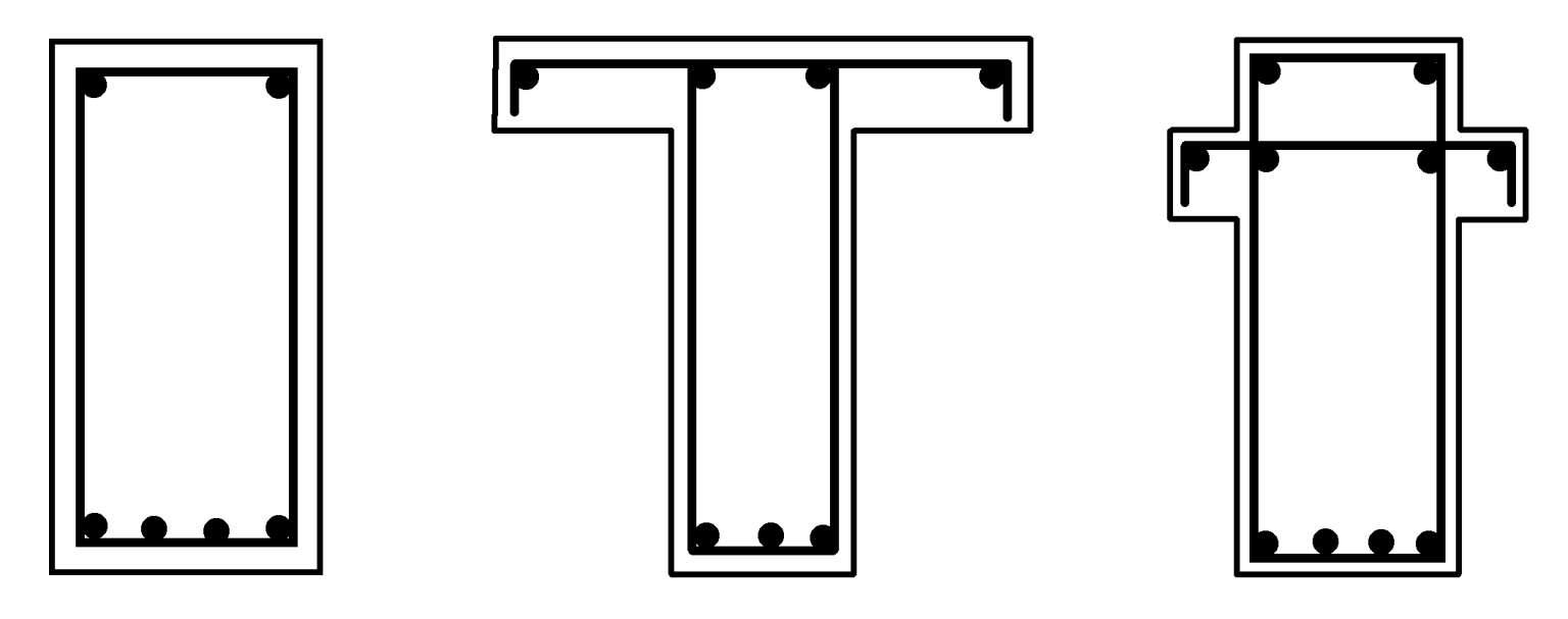 矩形截面通常分为单筋矩形截面和双筋矩形截面两种形式。只在截面的受拉区配有纵向受力钢筋的矩形截面,称为单筋矩形截面。不但在截面的受拉区,而且在截面的受压区同时配有纵向受力钢筋的矩形截面,称为双筋矩形截面。单筋矩形截面梁,纵向受力钢筋配置在截面受拉一侧。为形成骨架,受压区须配置架立钢筋。双筋矩形截面梁,截面上下均配置纵向受力钢筋。在箍筋的四角,必须有纵向钢筋。