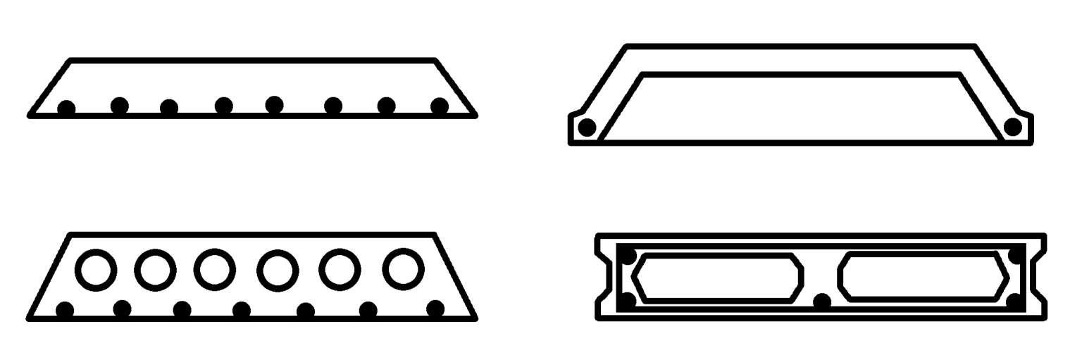 梁和板均为受弯构件,梁的截面高度一般都大于其宽度,而板的截面高度则远小于其宽度。钢筋混凝土梁、板可分为预制梁、板和现浇梁、板两大类。钢筋混凝土预制板的截面形式很多,最常用的有平板、槽形板和多孔板3种(图4.1)。钢筋混凝土预制梁最常用的截面形式为矩形和T形(图4.2)。有时为了降低层高将梁制成十字梁、花篮梁,将板搁支在伸出的翼缘上,使板的顶面与梁的顶面齐平。钢筋混凝土现浇梁、板的形式也很多。当板与梁一起浇注时(图4.3),板不但将其上的荷载传递给梁,而且与梁一起构成T形或倒L形截面共同承受荷载。
