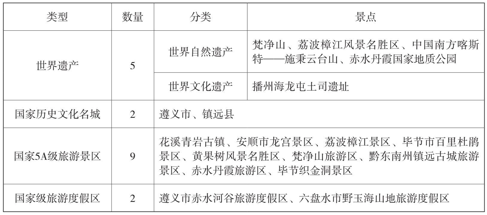 表3-4 贵州省世界及国家级旅游资源