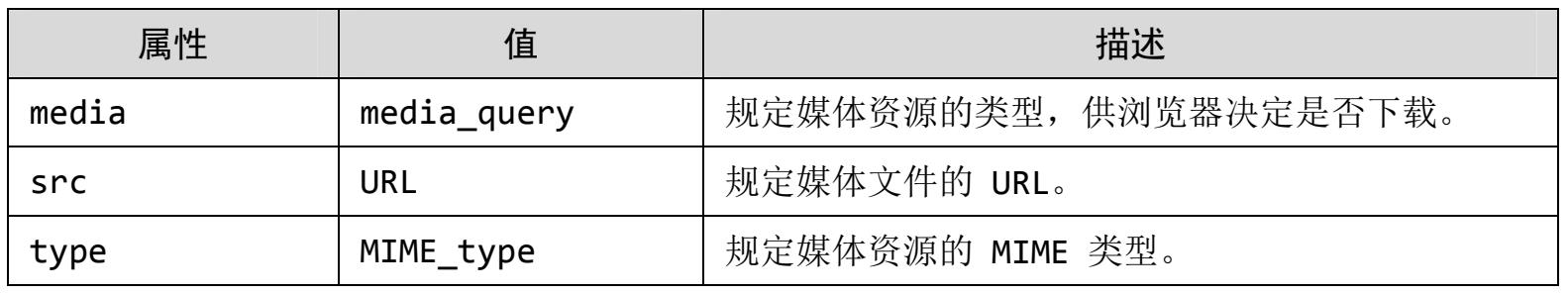 <source> 标签允许您规定两个视频/音频文件供浏览器根据它对媒体类型或者编解码器的支持进行选择。