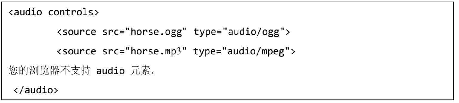 如需在 HTML5 中播放音频,需要使用以下代码: