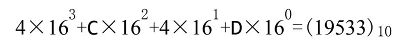 例:十六进制数(4C4D)16代表的十六进制数为: