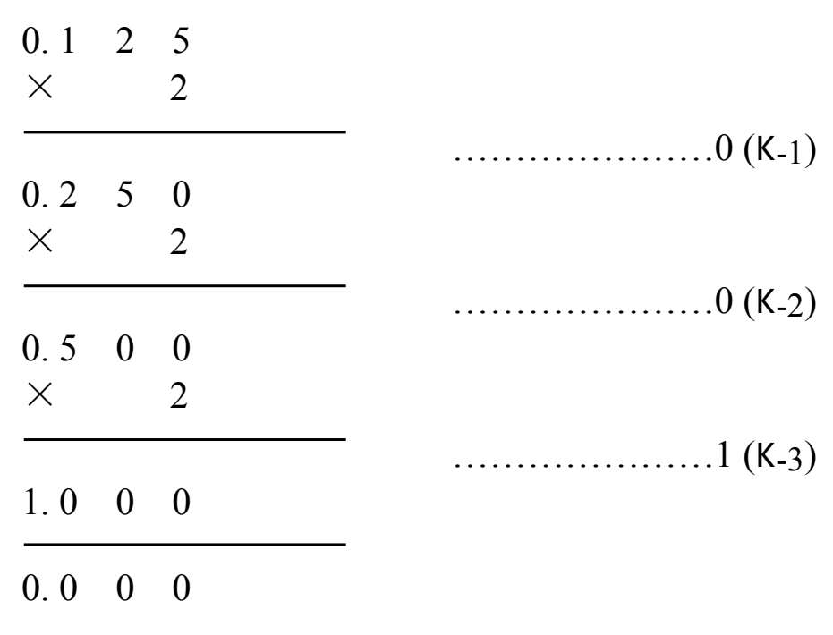 例如:将十进制数(0.125) 10 转换成相应的二进制数。