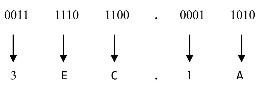结果为:(11111011.0001101) 2 =(3EC.1A) 16