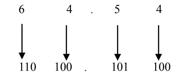 分析:这个数又有整数又有小数,可将其整数和小数分别转换成二进制,然后再把两者连接起来即可。