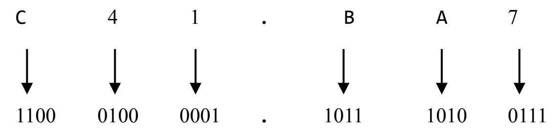 结果为:(C41.BA7) 16 = (110001000001.101110100111) 2