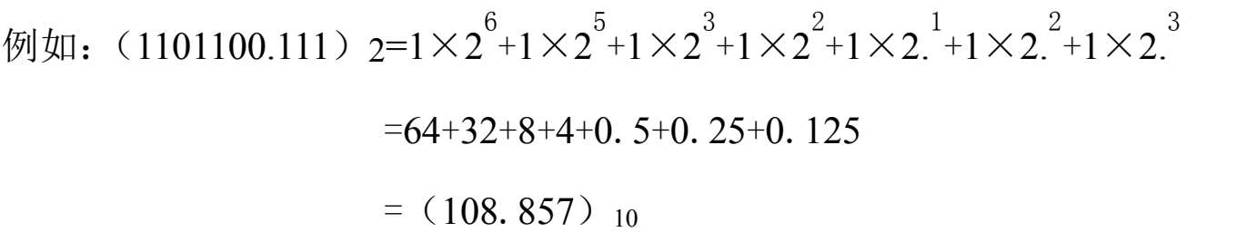 将二进制数转换成十进制数,只要将二进制数用计数制通用形式表示出来,计算出结果,便得到相应的十进制数。