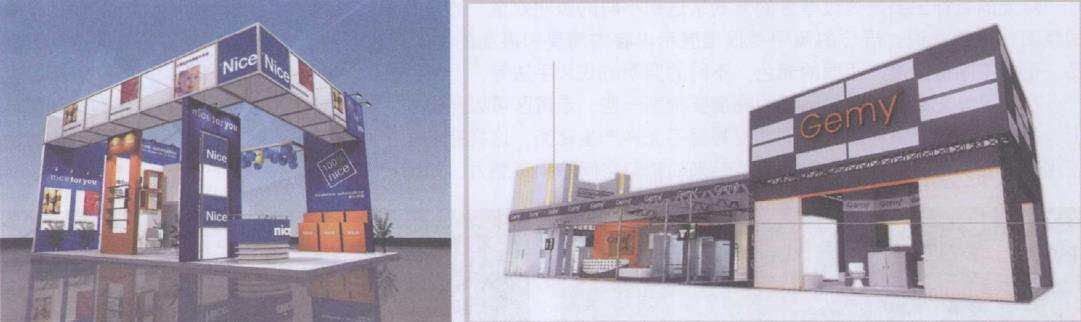 形形色色的展会有各种不同的展品,对展览会展台的设计和搭建也就相应地有不同的要求。设计师要根据企业展台在整个展会的位置、预期的观众数量与流向来考虑企业展台的基本形式是双层结构、城堡式结构,还是多面开口展台,然后对展台进行设计,如图 1.17 所示。