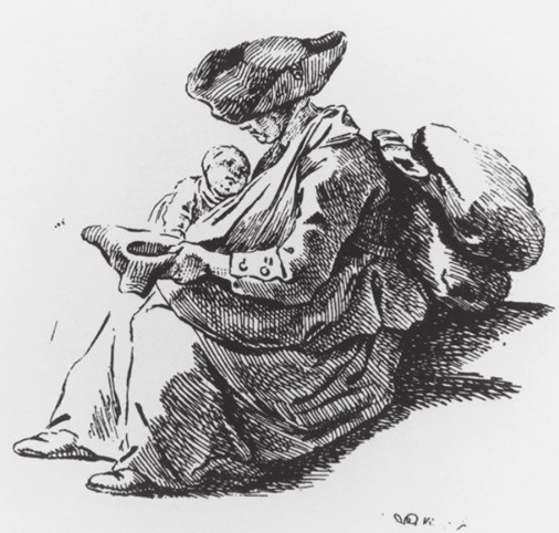 图15 行乞的军人妻子。丹尼尔·霍多维茨基创作的版画,1764年