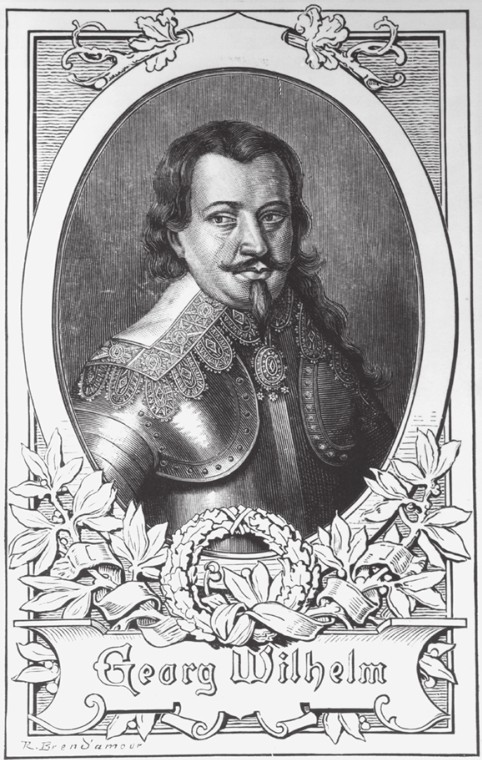 选帝侯格奥尔格·威廉(1619—1640年在位)是个胆小怕事、优柔寡断的人,可谓生不逢时,完全没有能力化解勃兰登堡在战争中陷入的极端困境。他一方面担心勃兰登堡有限的资源将会迅速耗竭,另一方面又害怕国土会遭到报复性攻击,所以在战争的最初几年,一直都推三阻四,不愿与任何一方缔结盟约。虽然他在道义上支持信奉新教的波希米亚等级会议反抗哈布斯堡王朝皇帝的斗争,但到了内兄普法尔茨的选帝侯率军进入波希米亚,与等级会议并肩作战的时候,他却打了退堂鼓,一直都在袖手旁观。1620年代中期,也就是在丹麦、瑞典、法国、英格兰等国的朝廷合计建立反哈布斯堡联盟的那段时间,勃兰登堡游走于大国外交的边缘地带,急切地施展着手腕。一方面,勃兰登堡先是在1620年时把选帝侯格奥尔格·威廉的妹妹嫁给瑞典国王,试图劝说瑞典出兵与帝国皇帝交战,之后又在1626年把选帝侯的另一个妹妹嫁给了特兰西瓦尼亚大公——特兰西瓦尼亚大公信奉加尔文宗,在土耳其人的支持下不断地与哈布斯堡王朝交战,成了一个令神圣罗马帝国皇帝头疼不已的强敌;另一方面,勃兰登堡又摆出了一副忠心耿耿的姿态,不断地向信奉天主教的皇帝宣誓效忠,对英格兰与丹麦在1624—1626年期间成立的反对皇帝的海牙联盟也避之唯恐不及。