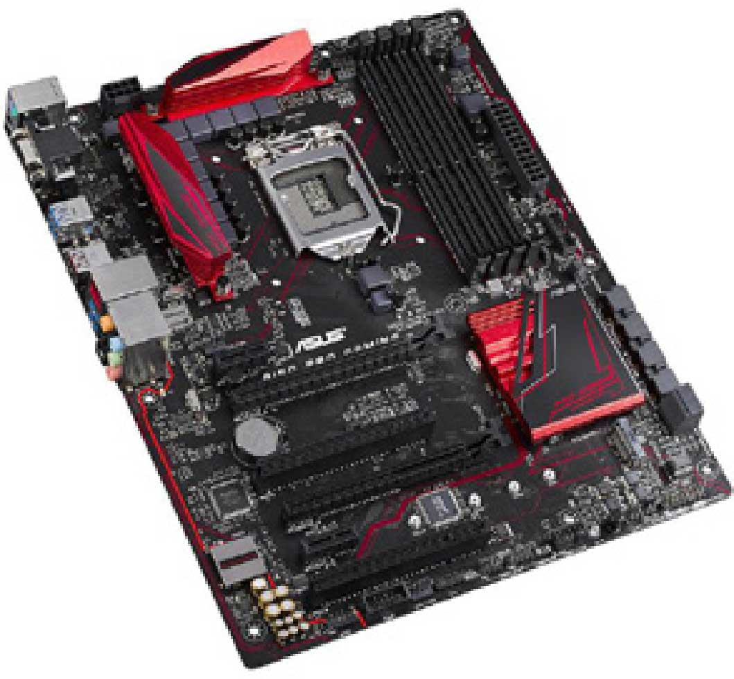 ● 主板: 主板又称为主机板、系统板或母板,主板上集成了各种电子元件和电路系统等。主板是影响计算机工作性能的主要部件之一,其外观如图1-3所示。