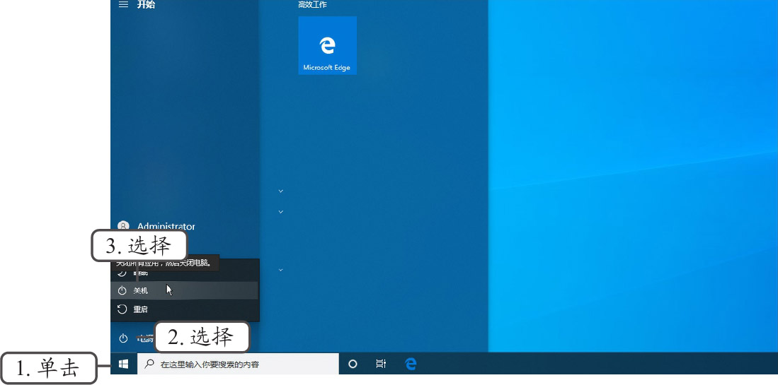 图1-19 关闭计算机并退出Windows 10操作界面