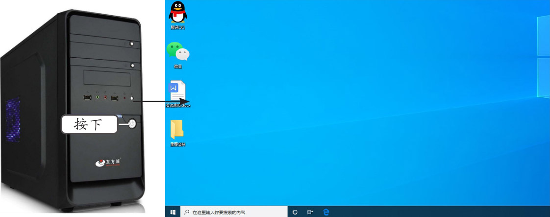 连接好计算机后,若要使用计算机进行办公,则需要启动计算机,进入操作系统,并在任务完成后关闭计算机。下面启动和关闭计算机,其具体操作如下。