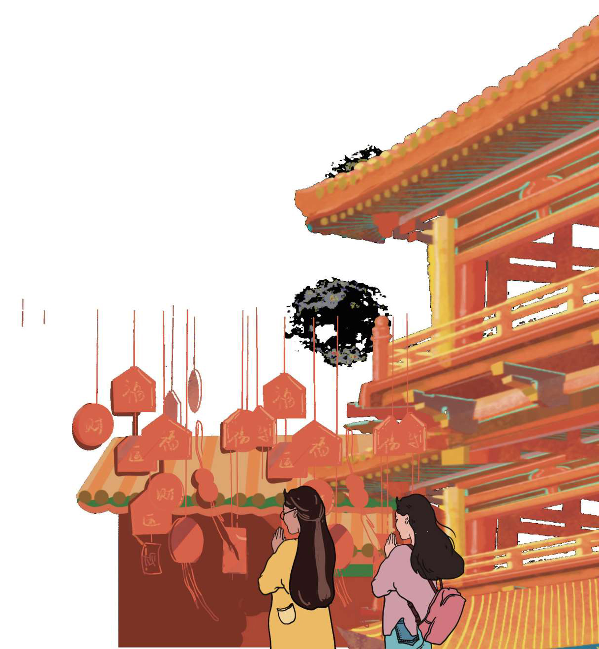 当代年轻人手上戴着“十八籽”手串,桌上摆着请来的护身符,手机里收藏着去各路寺庙拜佛祈福的攻略。庄重严肃的寺庙和旺盛的香火后,是无数张年轻虔诚的面孔,寺庙成为越来越多年轻人的旅行目的地。