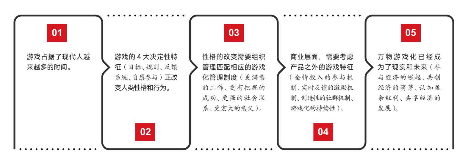 这正是电子游戏蕴含的改变——游戏化的参与机制(全情投入)、游戏化的激励机制(实时反馈)、游戏化的团队机制(和陌生人结盟,创造更强大社群)、游戏化的持续性(让幸福成为习惯)。