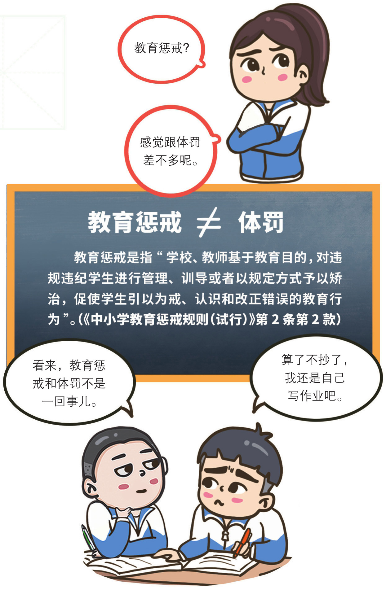 为了防止实践中个别教师将体罚和变相体罚作为教育惩戒实施,《中小学教育惩戒规则(试行)》专门对禁止实施的八类不当教育行为作了明确规定。