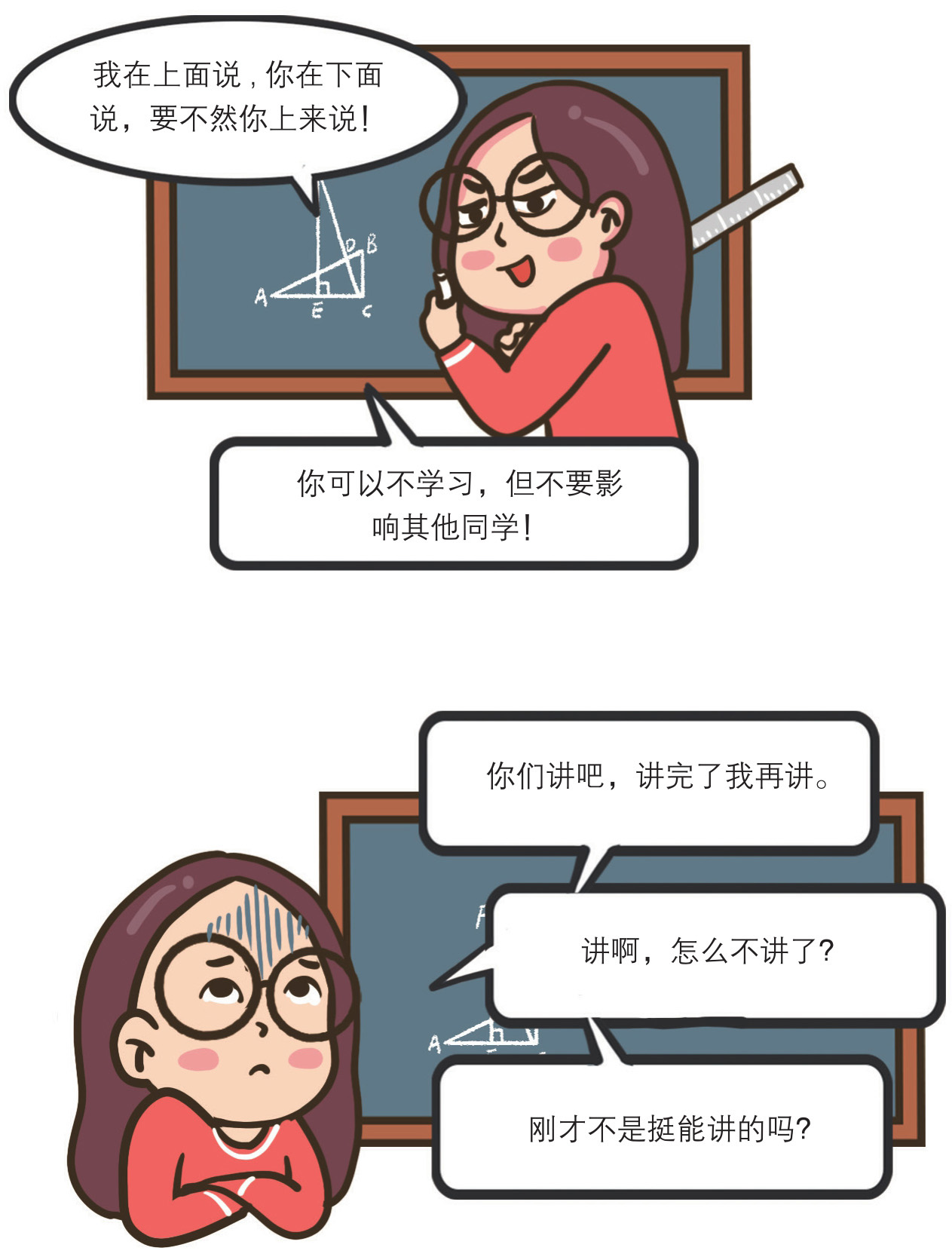 但如果总是有人说话,老师的好脾气就会达到底线。这时候,班级里会出现死一般的寂静,接下来就是老师的“show time”(表演时间)!