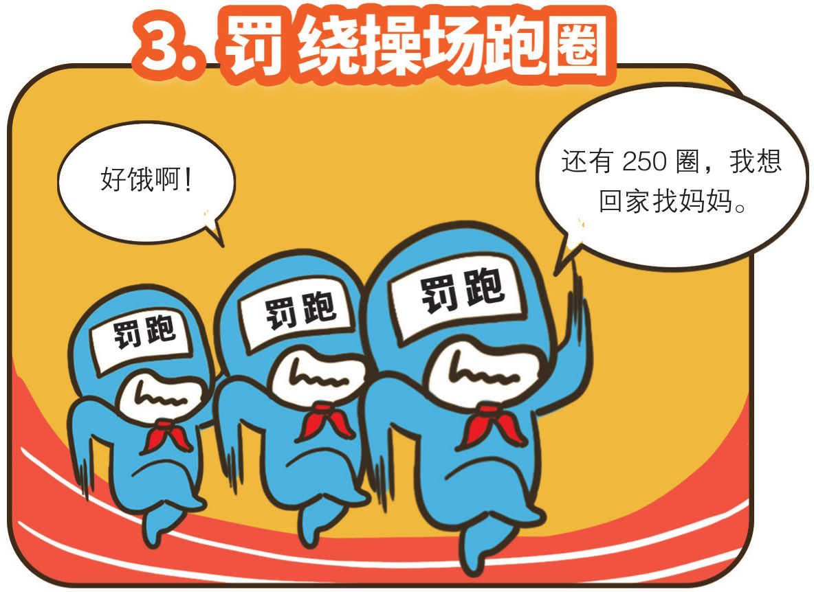 常见的体罚方式有:罚站、打手心、罚绕操场跑圈等。