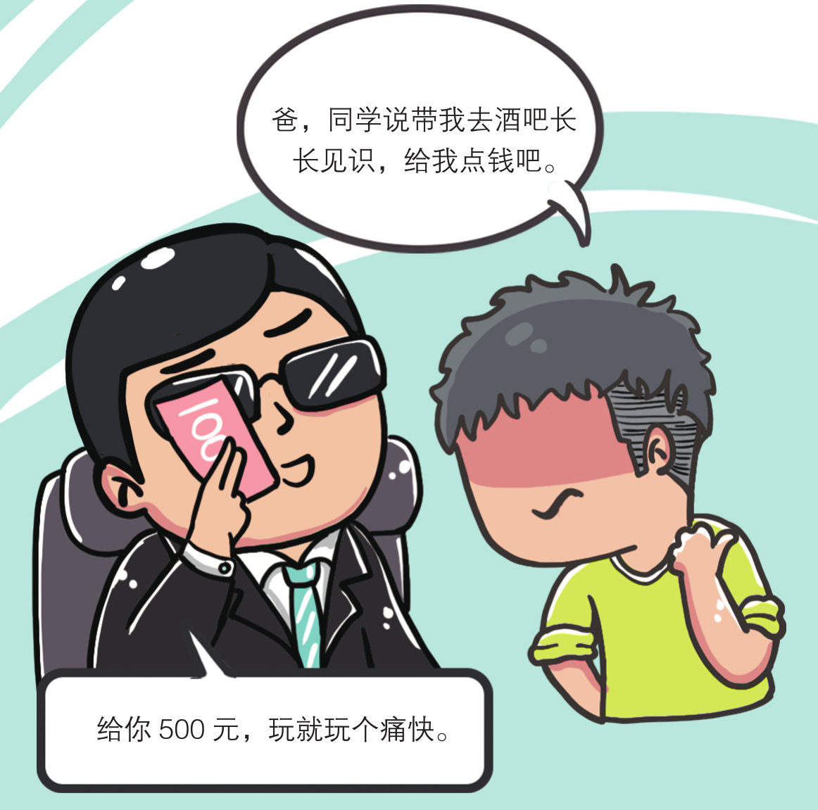 爸爸的做法是错误的。 《未成年人保护法》第17条第7项规定,不得放任未成年人进入营业性娱乐场所、酒吧、互联网上网服务营业场所等不适宜未成年人活动的场所。