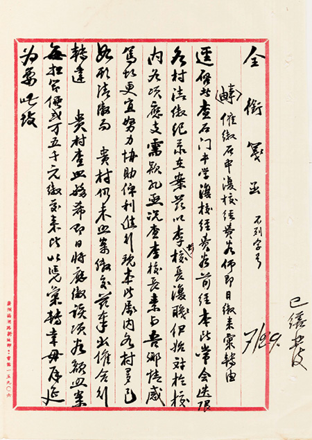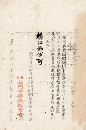 图2-17 石门中学校校董会为“筹集经费、改选校董”事宜邀请横江乡公所派代表莅校开会(1946年7月)