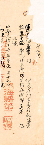 图2-16 石门中学收到建安乡宏冈村、麻奢村复校经费谷的收据(1946年)
