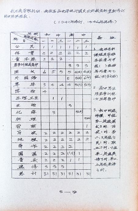 图2-13 抗战胜利后南海县各学校课程表(选自《南海县教育志》,1989年油印本)