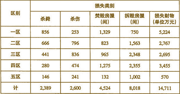 图2-10 南海县地方抗战损失统计表(1946年)(《日军侵略广东档案史料选编》,第543页,见佛山市抗损资料B6-298)