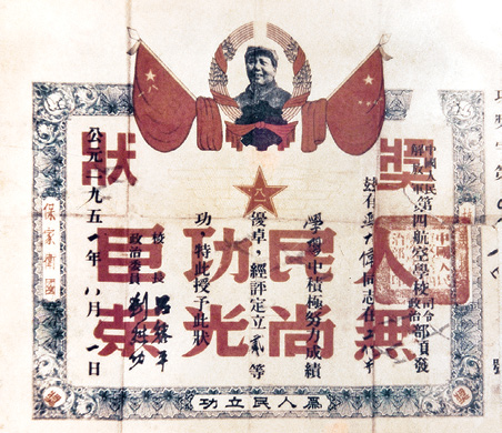 图3-10 石中校友、解放军第四航空学校学生冯大伟在抗美援朝中获授二等功奖状