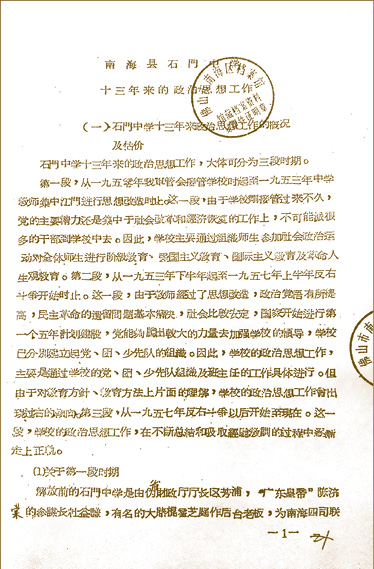 图3-8 《南海县石门中学十三年来的政治思想工作》(选摘,1962年12月14日)