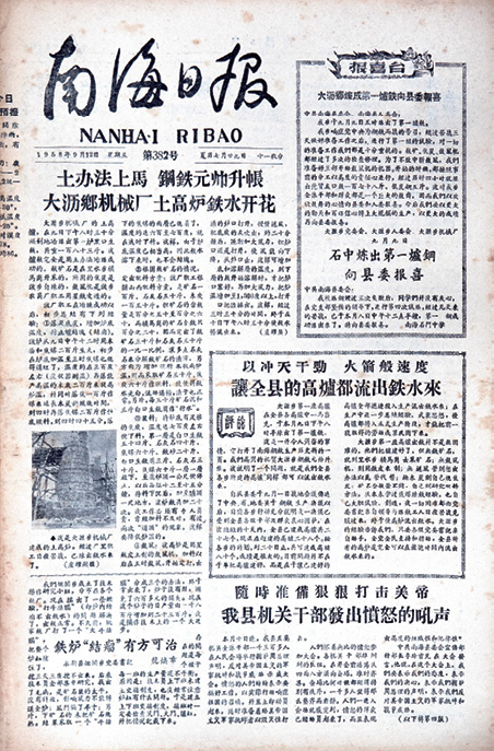 图4-4 特殊记忆:《南海日报》报道《石中炼出第一炉钢》(1958年9月12日)