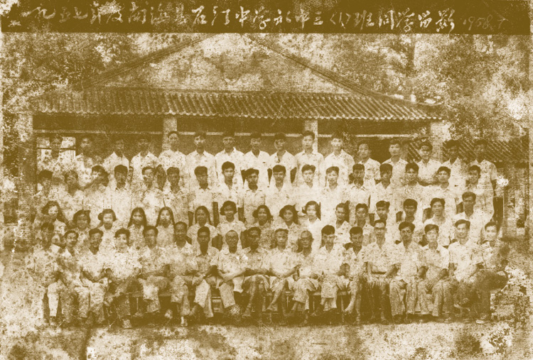 图4-5 1957年度南海县石门中学初中三(1)班同学留影(摄于1958年7月)