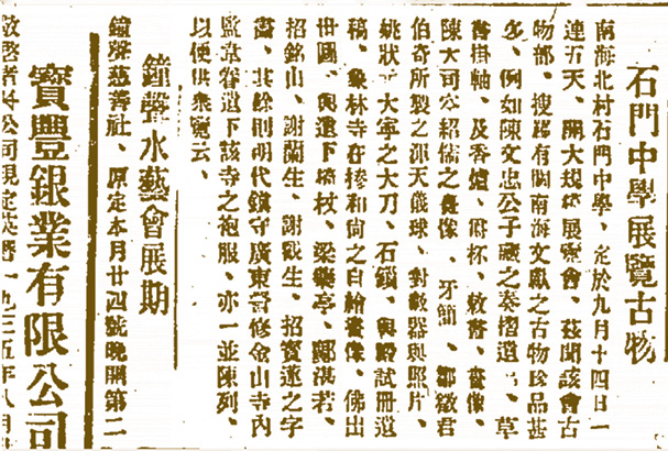 图1-37 《石门中学展览古物》(选自《香港工商日报》1935年8月25日)
