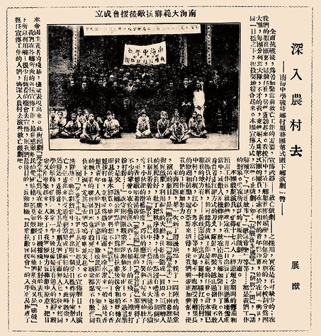 图2-3 《大众生路》报道南海中学战时乡村服务团下乡演剧(1938年)