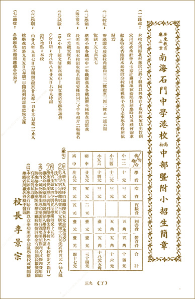 图2-7 《南海石门中学港校高初中部暨附小招生简章》(选自吕家伟、赵世铭编纂:《港澳学校概览》)