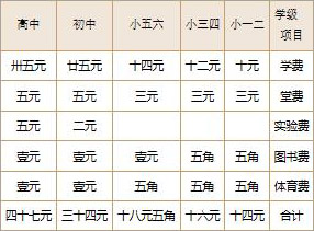(七)缴费:各级学生本学期应缴各费如下: